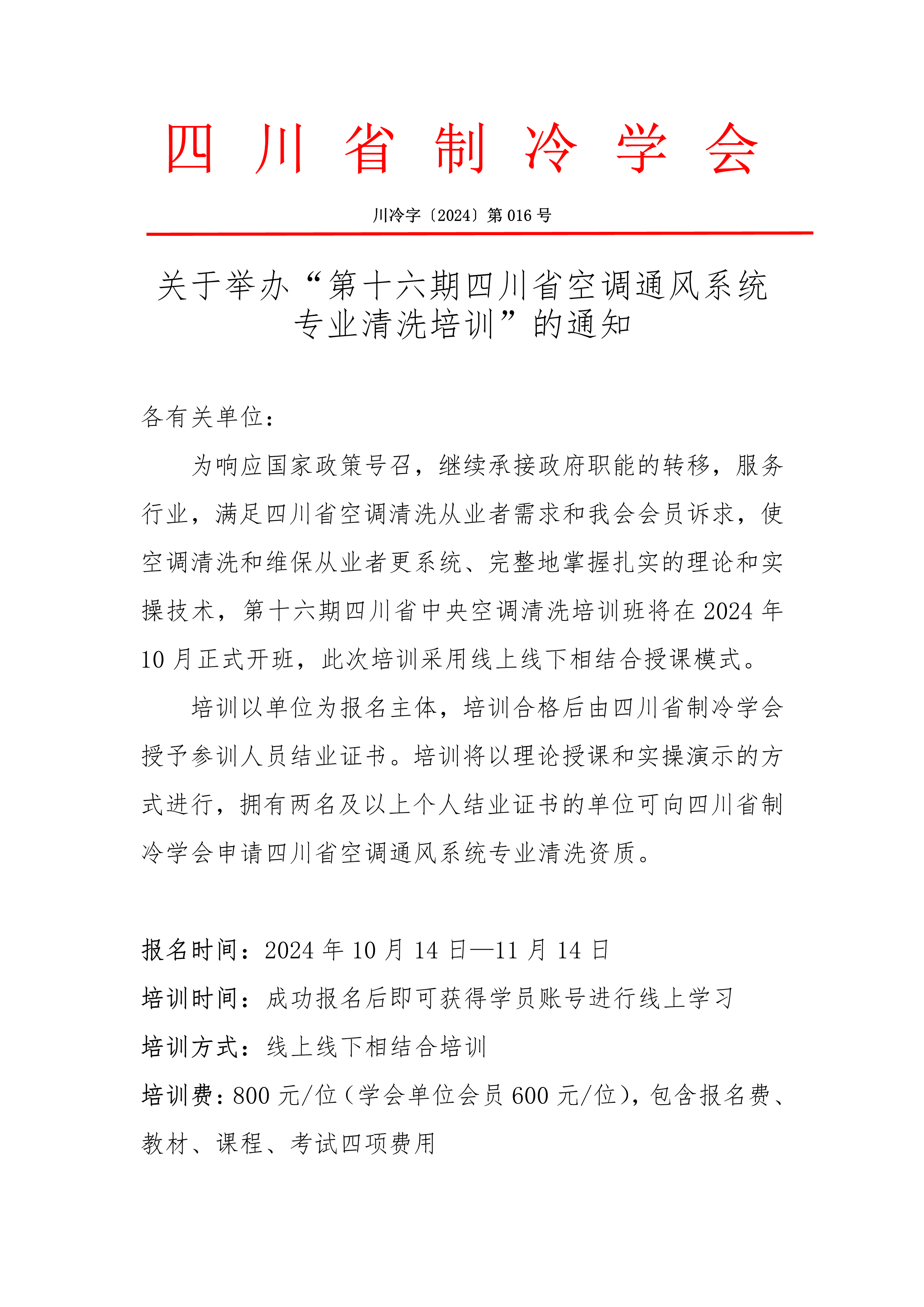 關(guān)于舉辦“第十六期四川省空調(diào)通風(fēng)系統(tǒng)專業(yè)清洗培訓(xùn)”的通知